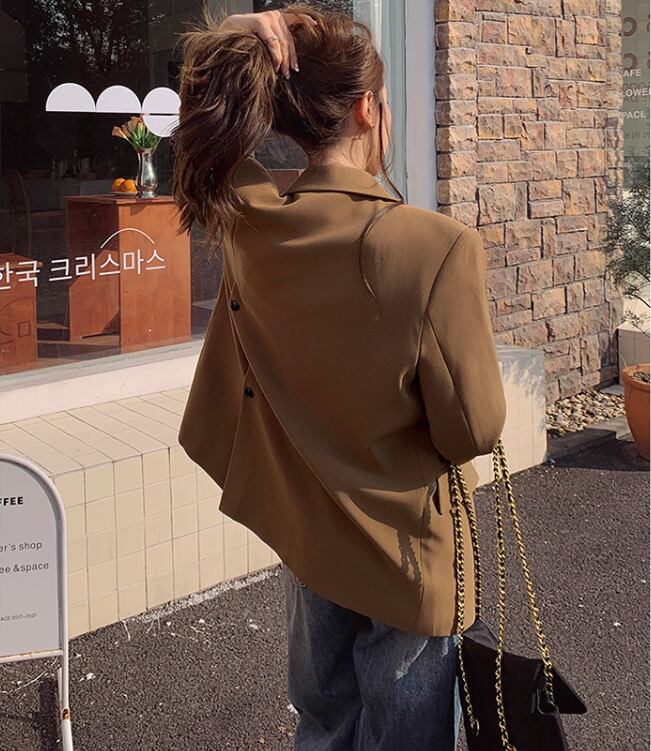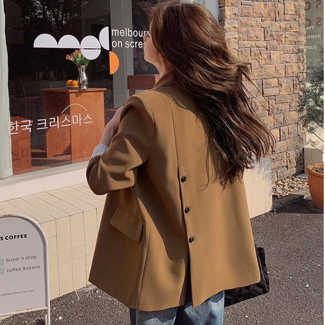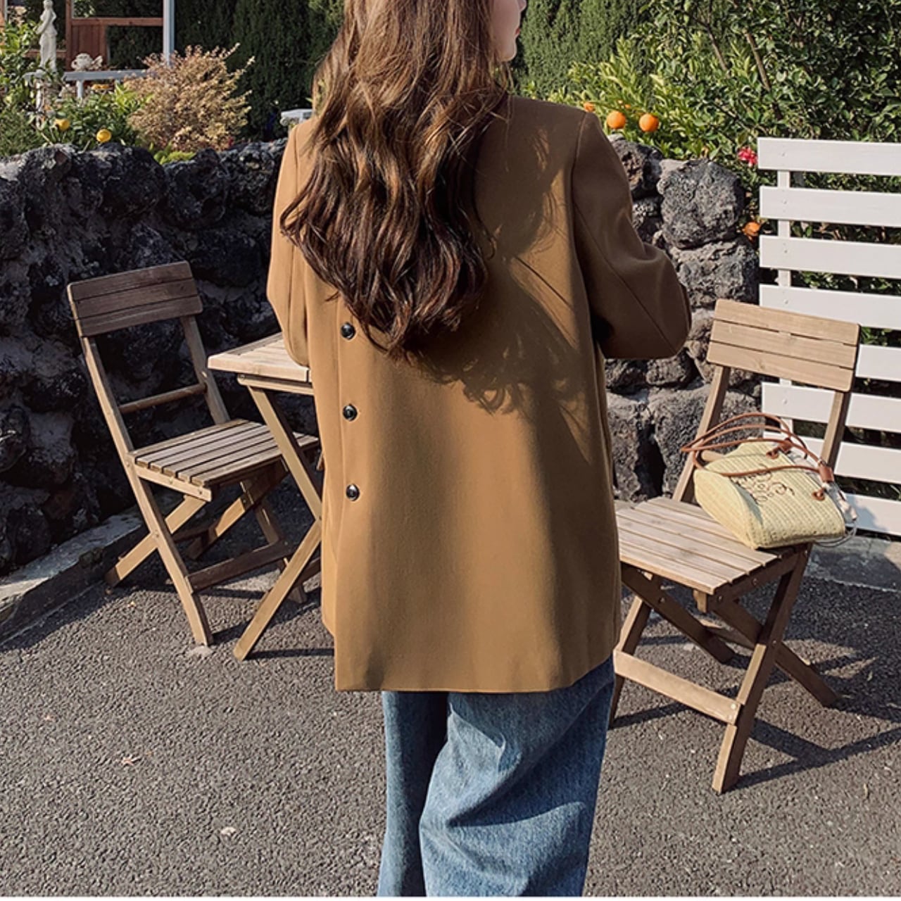後ろ姿まで抜かりない、バックボタンデザインのダブルジャケット。