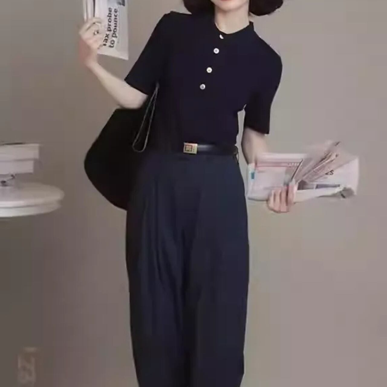 コンパクトなシルエットにゴールドボタンをあしらった、ミニマルなニットトップス。