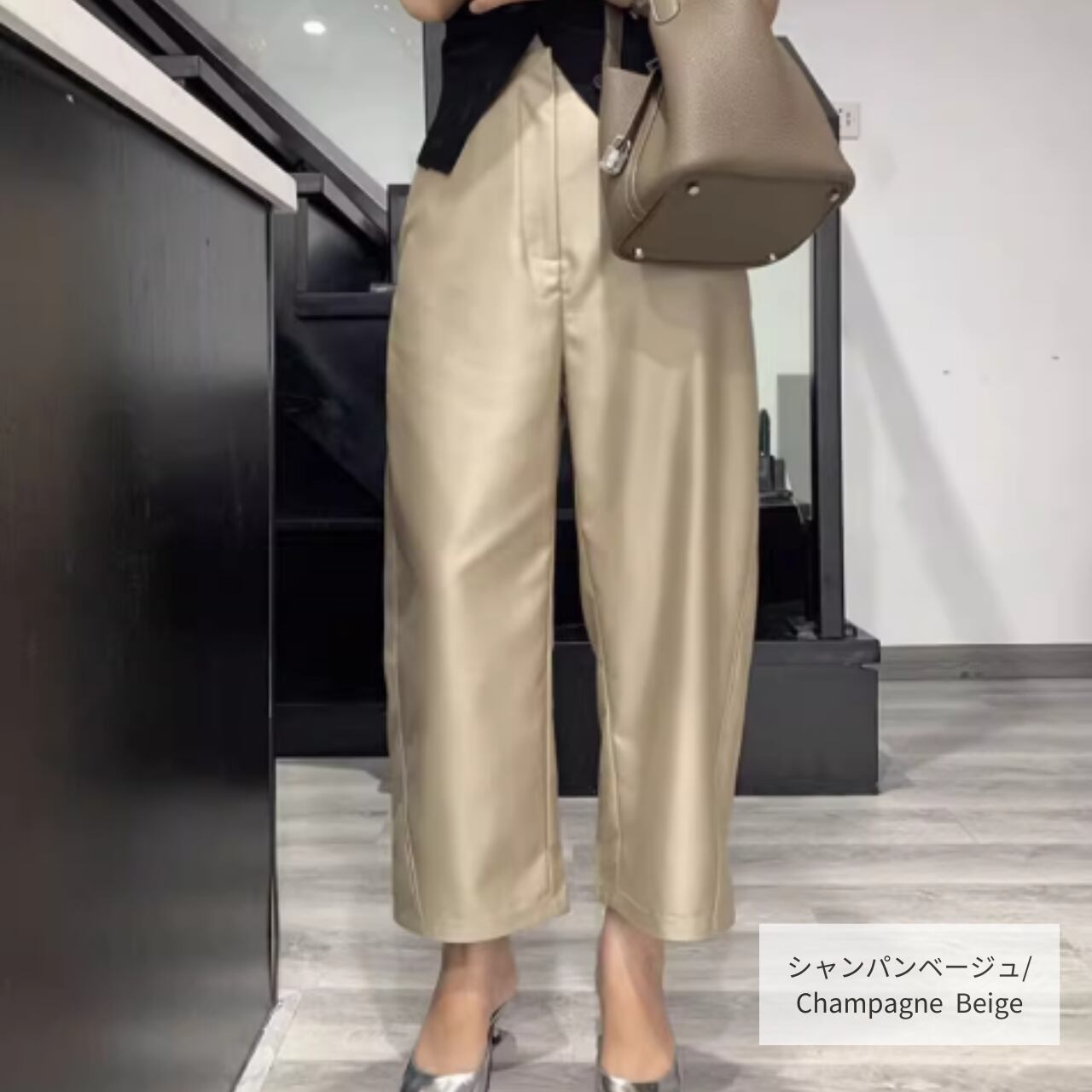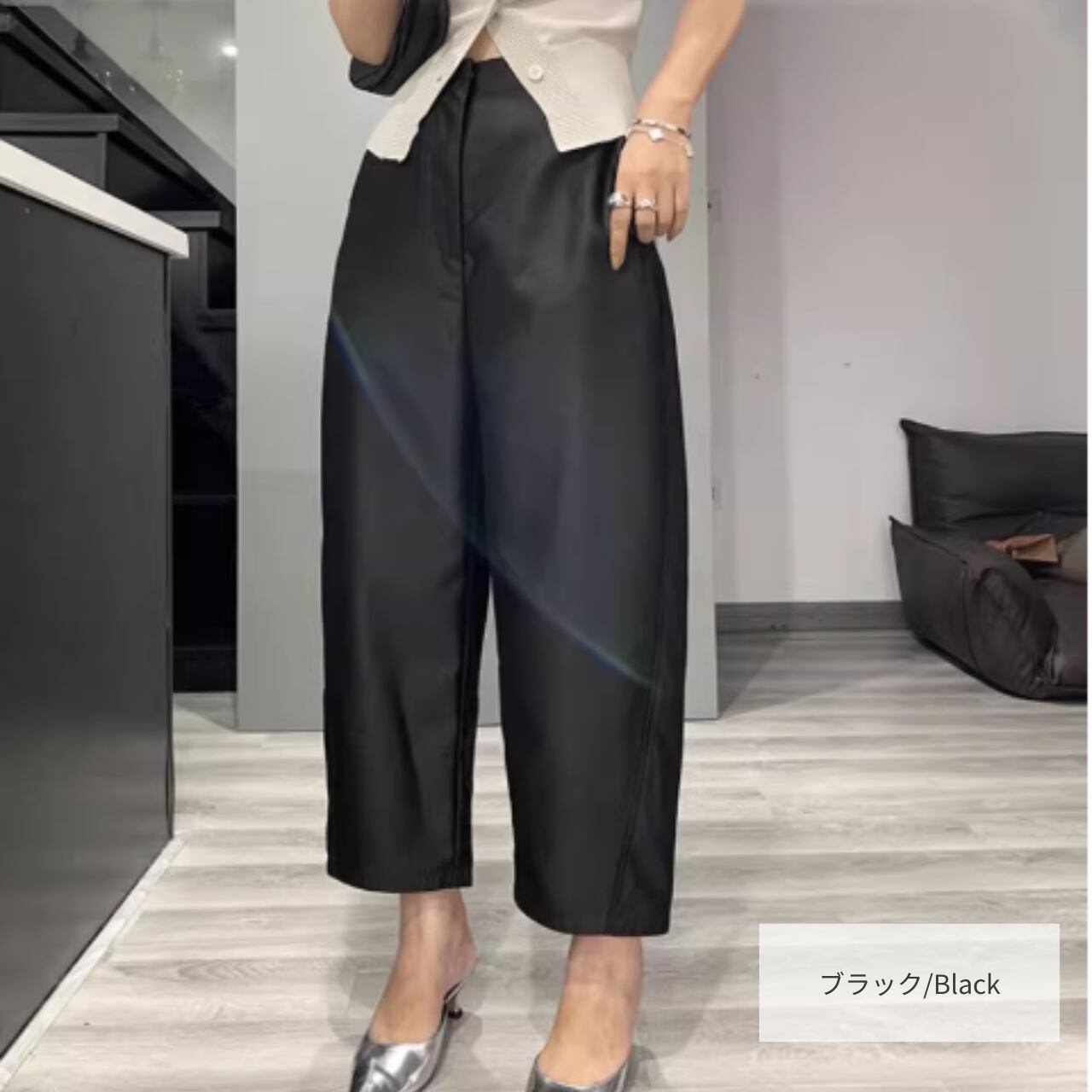 フロントタックとセンタープレスが縦のラインを強調し、脚をすっきり長く見せてくれます。