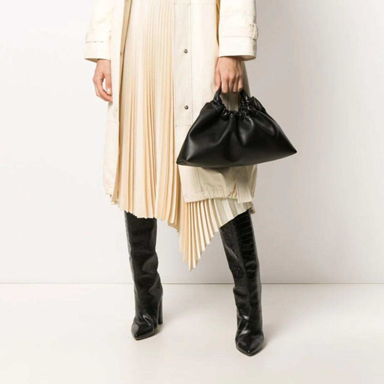 ふんわりと寄せたギャザーが印象的なハンドバッグ。