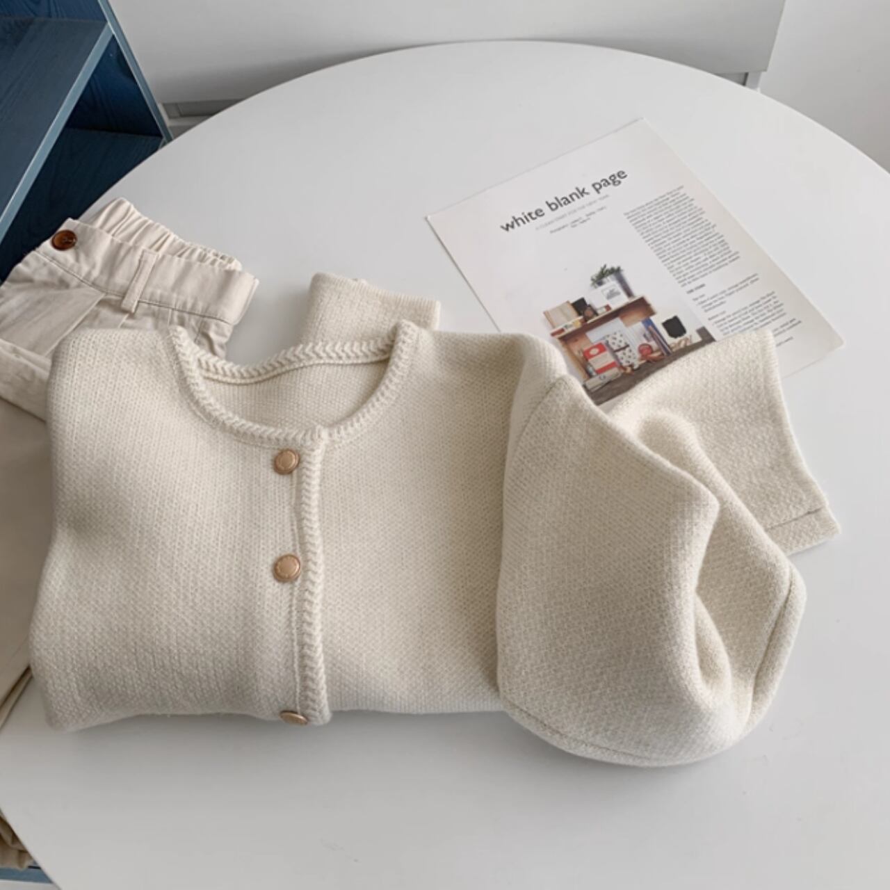 短丈シルエットでボトムを選ばず、スカートにもパンツにも合わせやすい1枚です。