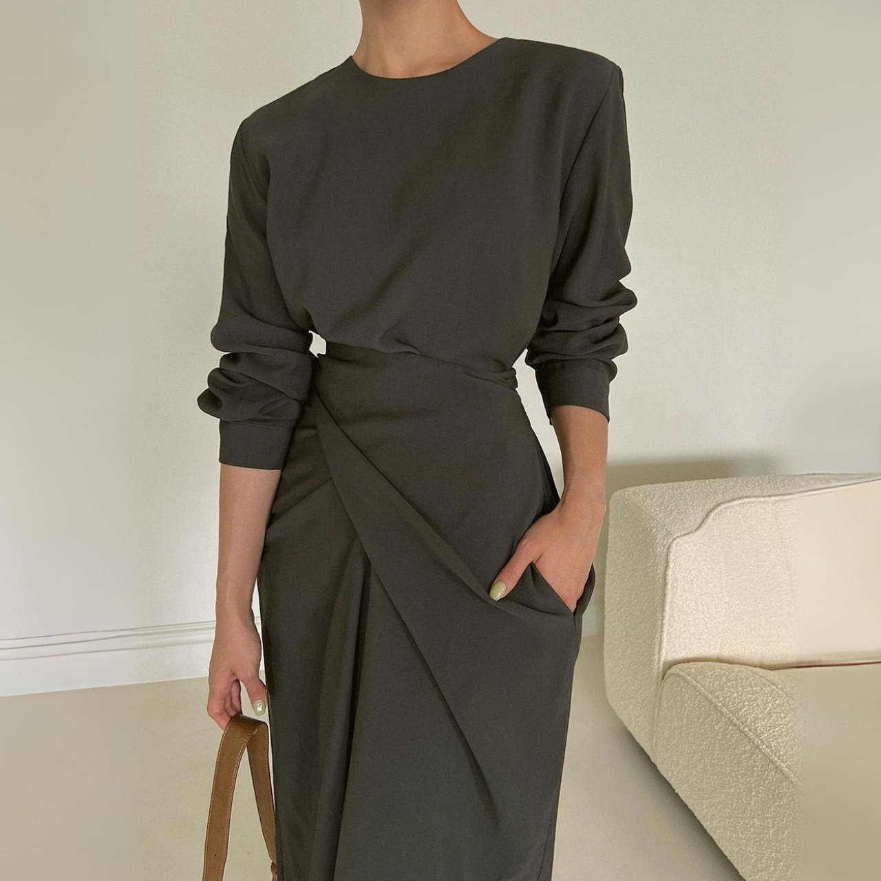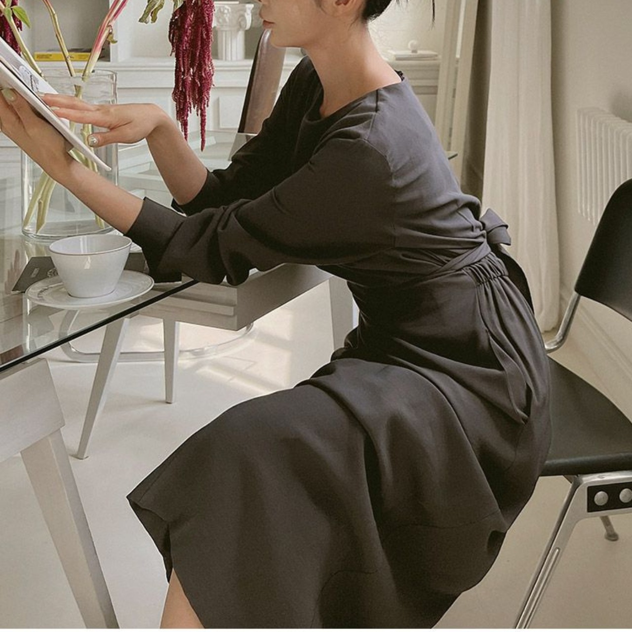 グレー1色展開で大人の余裕を感じさせる洗練ワンピースです。