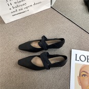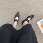 スクエアシルエットにクロスストラップを組み合わせた、フレンチライクなフラットシューズ。