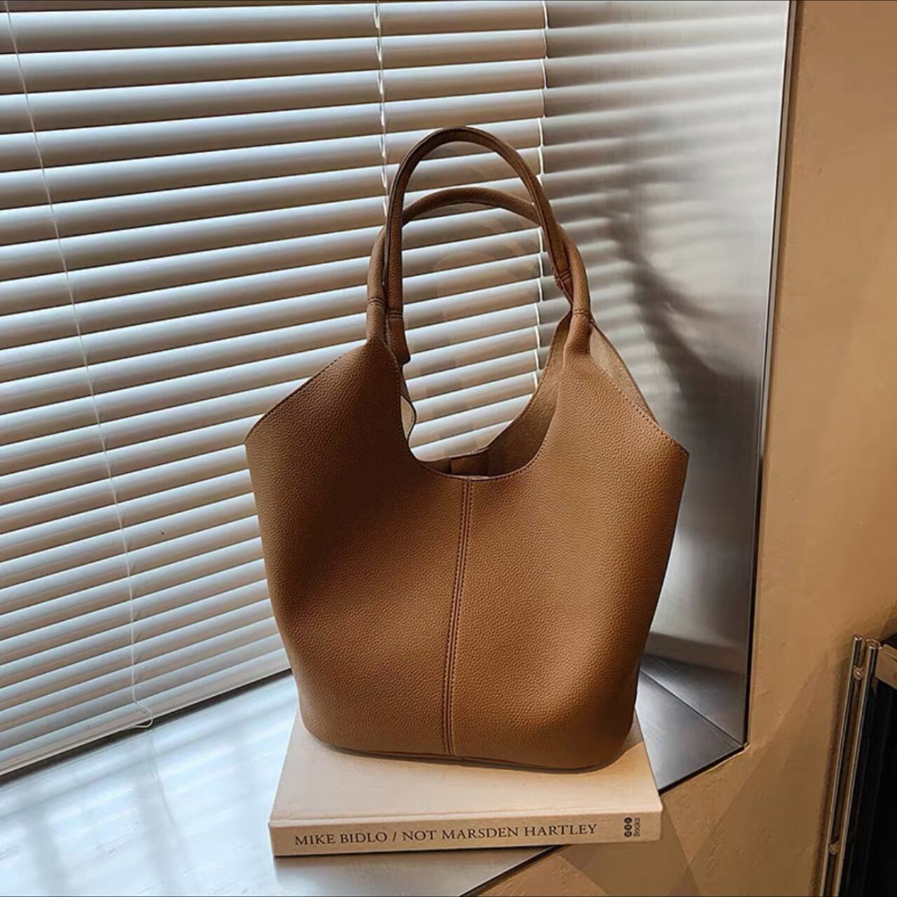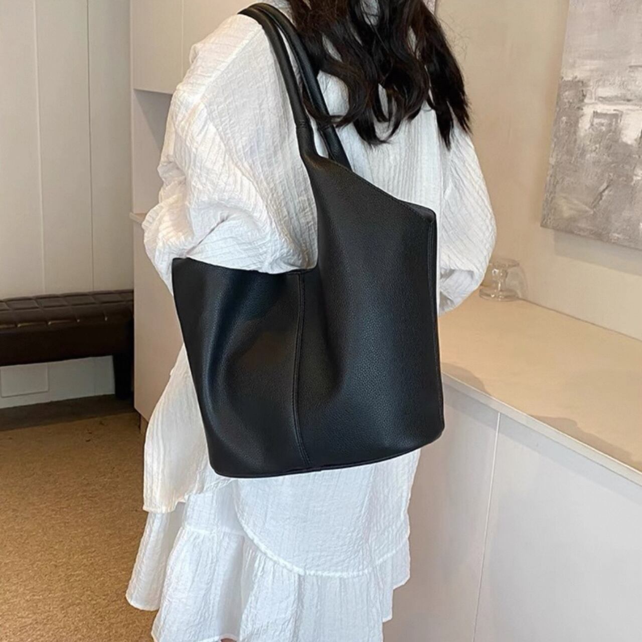柔らかな風合いのPUレザーを使用した、大容量トートバッグ。