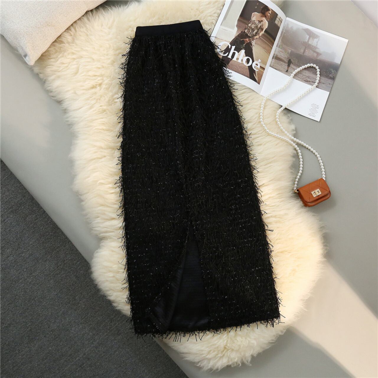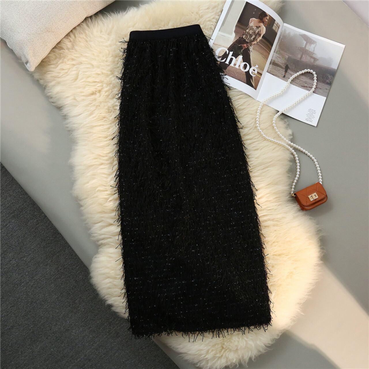 羽毛のようなふんわりとした毛流れが上品な印象のツイードスカート。