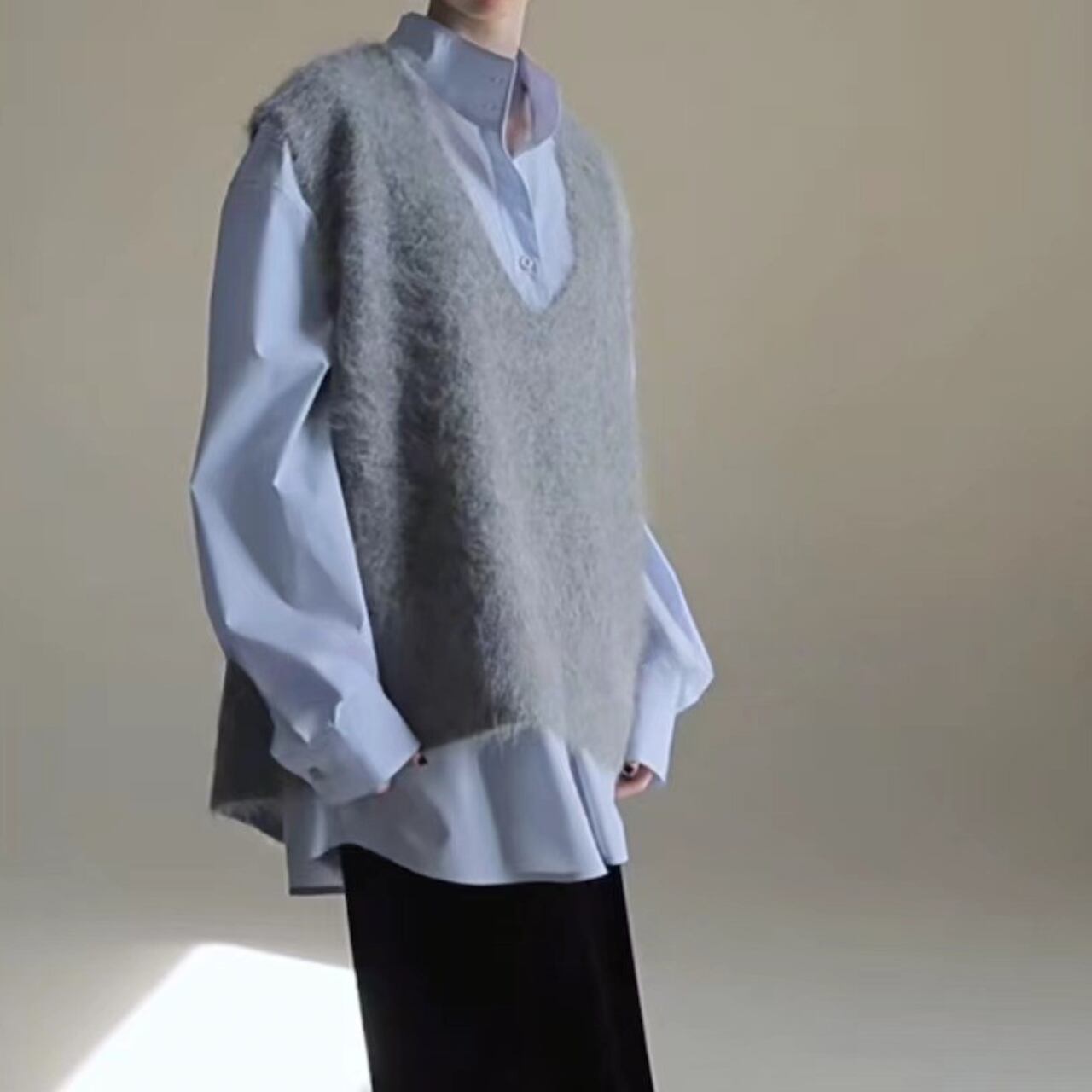 タートルやシャツを重ねるだけで、モードで柔らかなニュアンスを演出します。