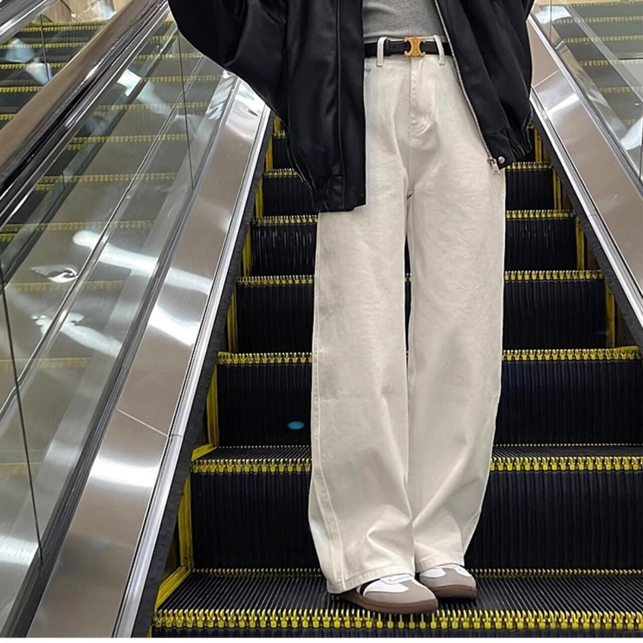 カジュアルながらも洗練された印象を与える、ワイドストレートジーンズ。