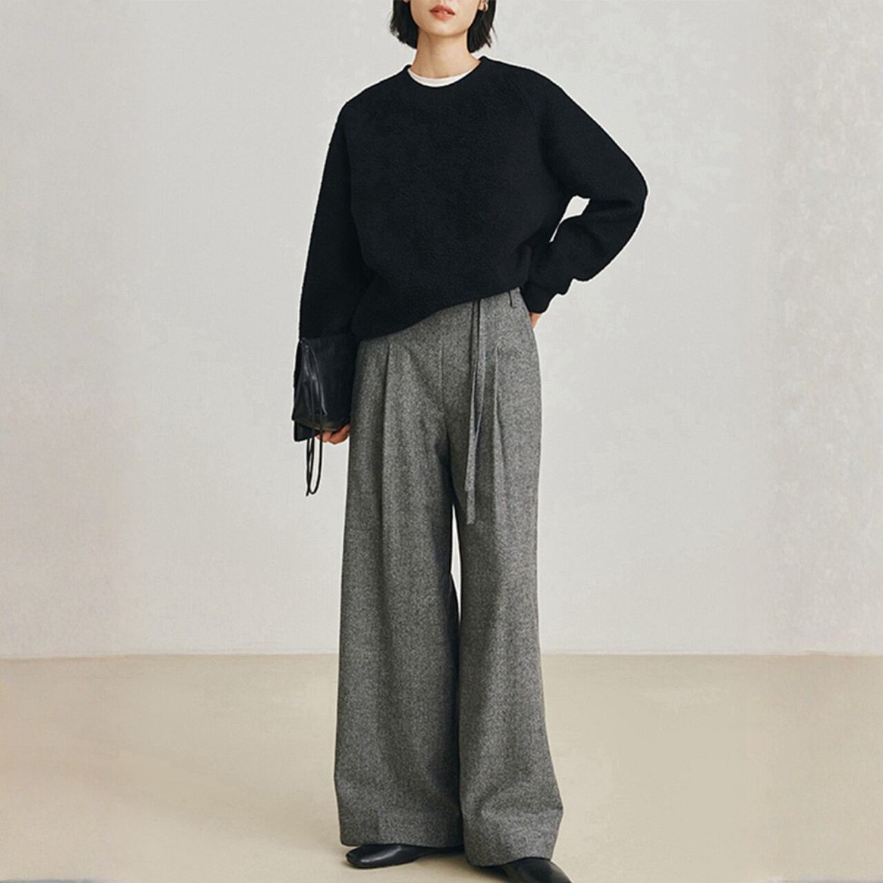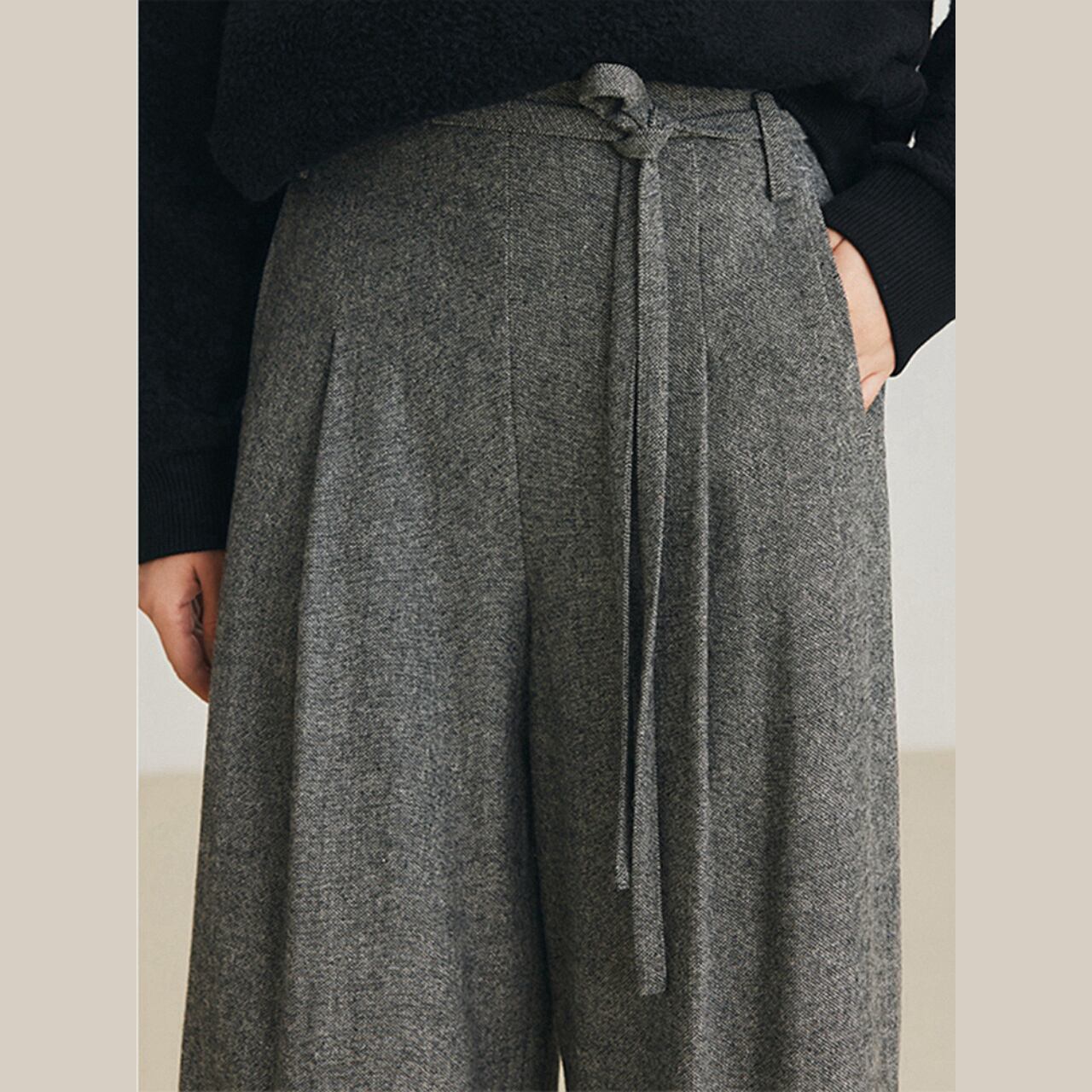 ゆとりのあるシルエットながら、腰まわりはすっきりと仕立てられ、ニットやシャツを合わせるだけで知的なムードに。