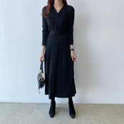 Belted Knit Pleats Dress 00066
