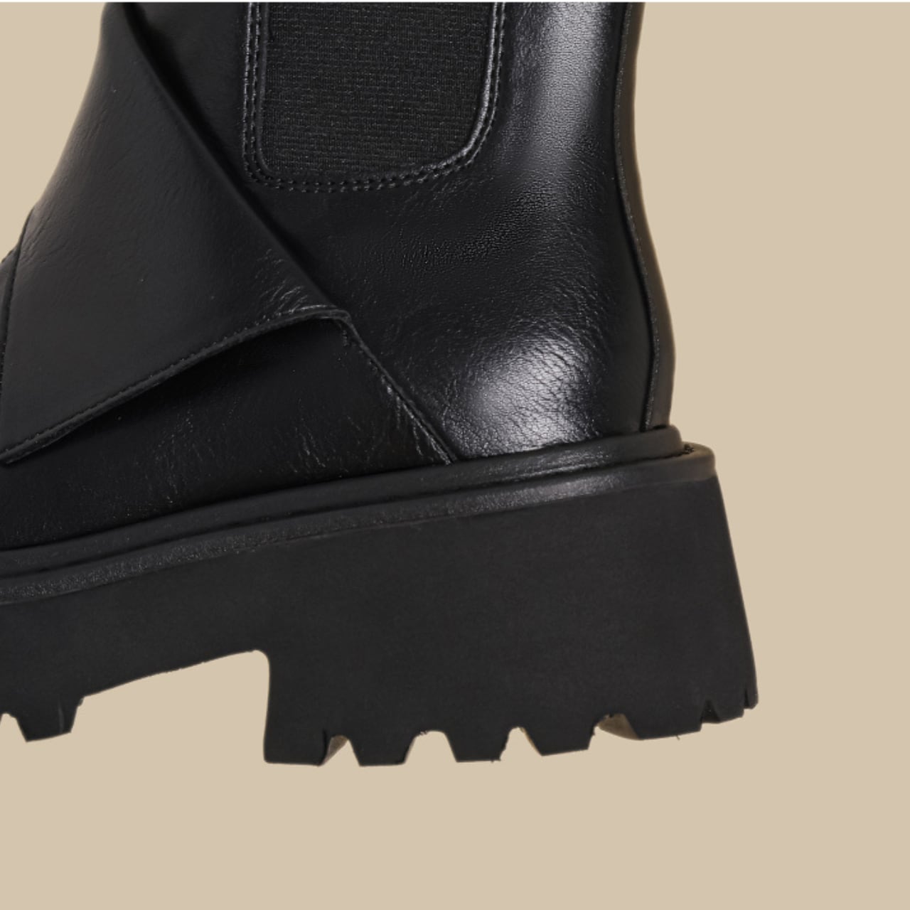 存在感のある厚底ソールがスタイルアップを叶えるチェルシーブーツ。