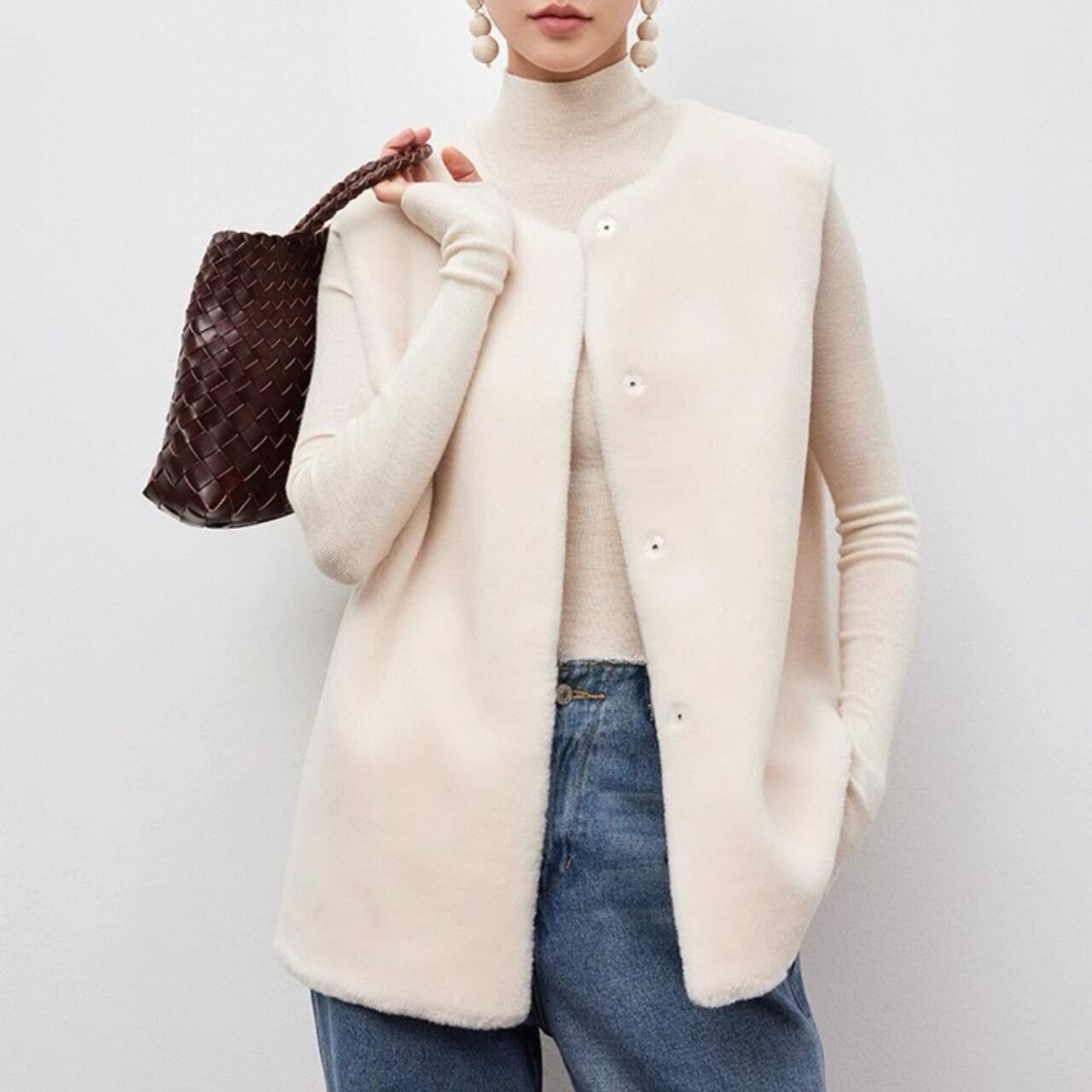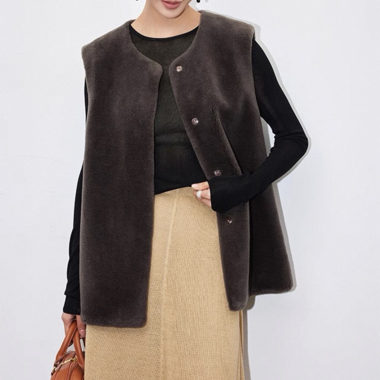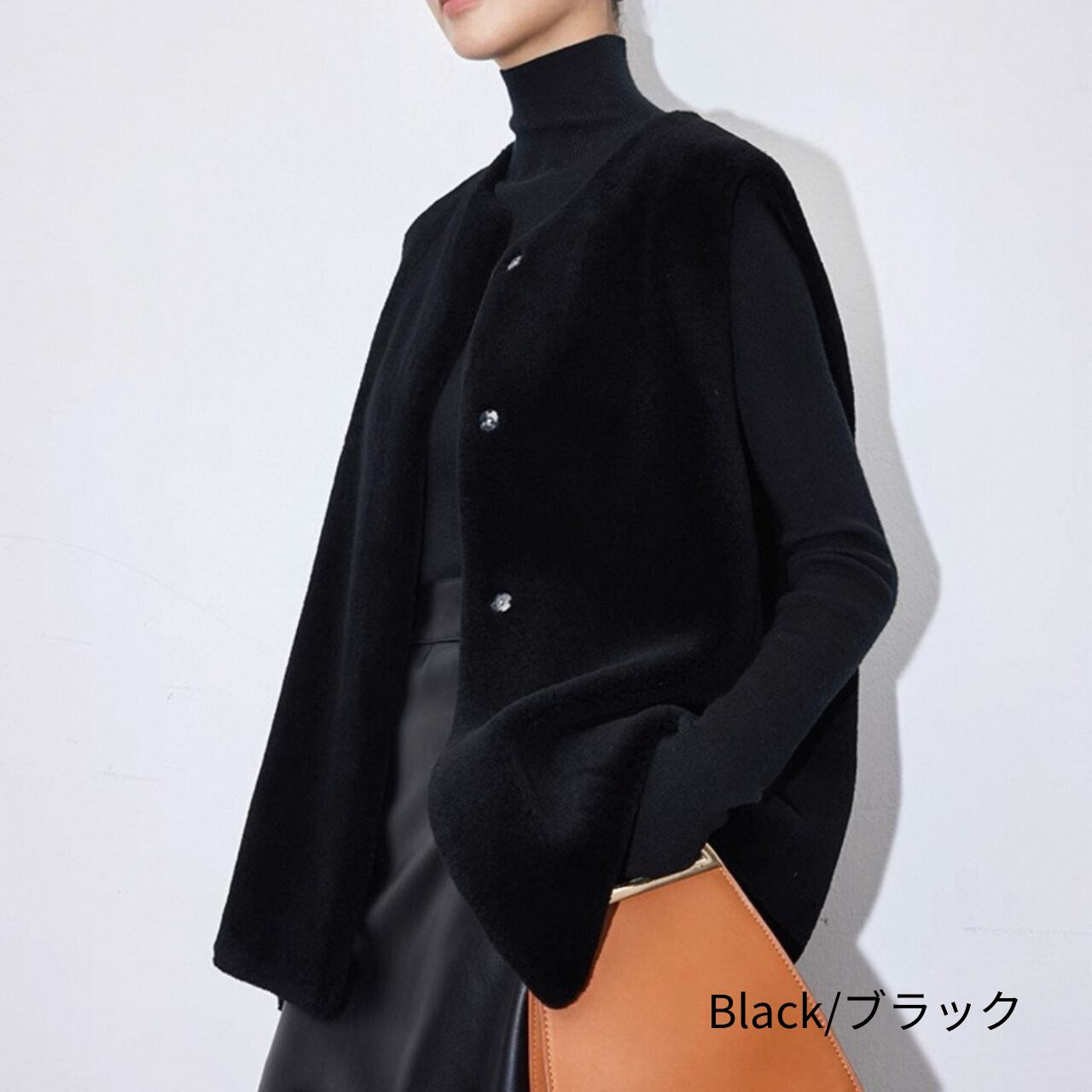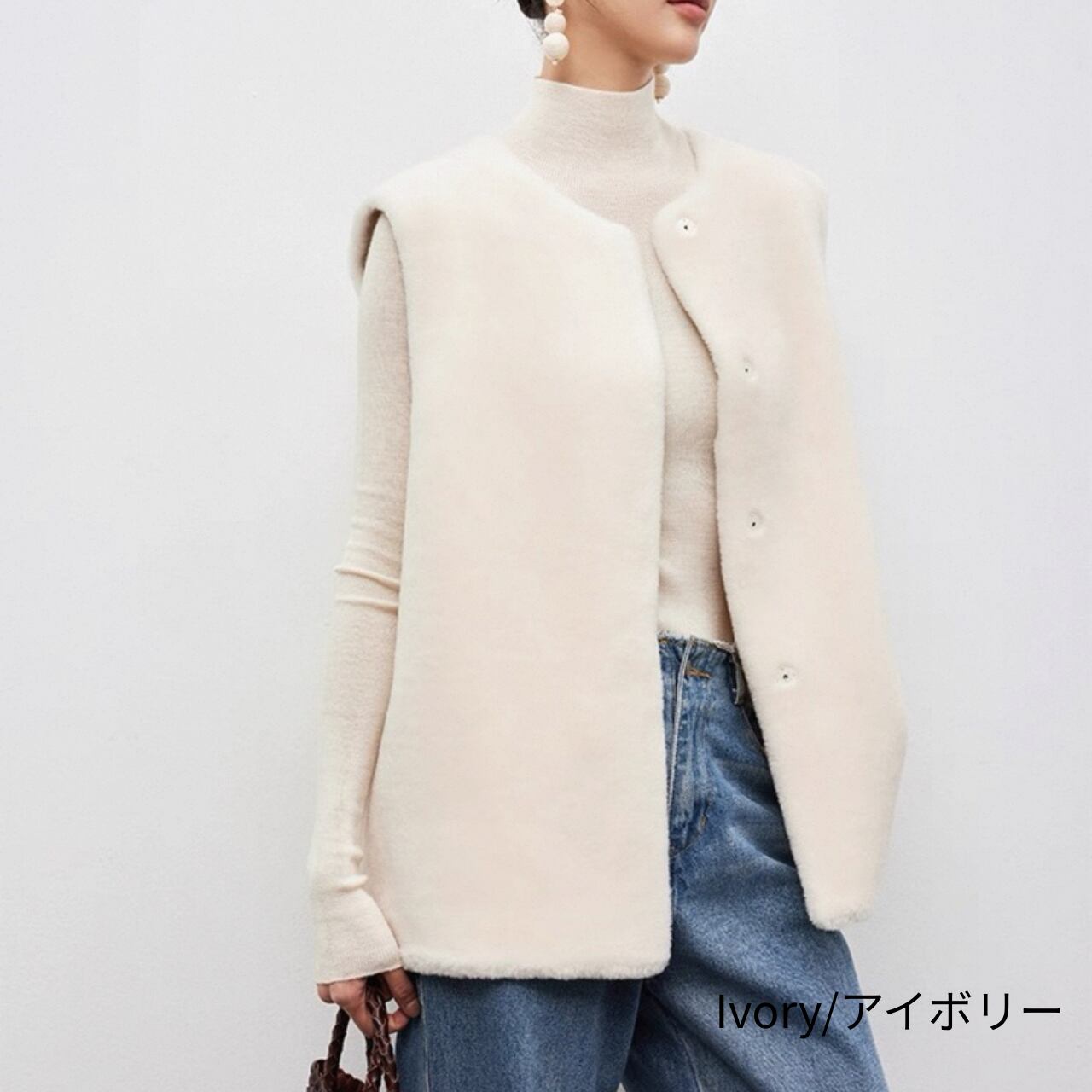 柔らかな風合いと軽やかな暖かさが魅力のムートンタッチベスト。