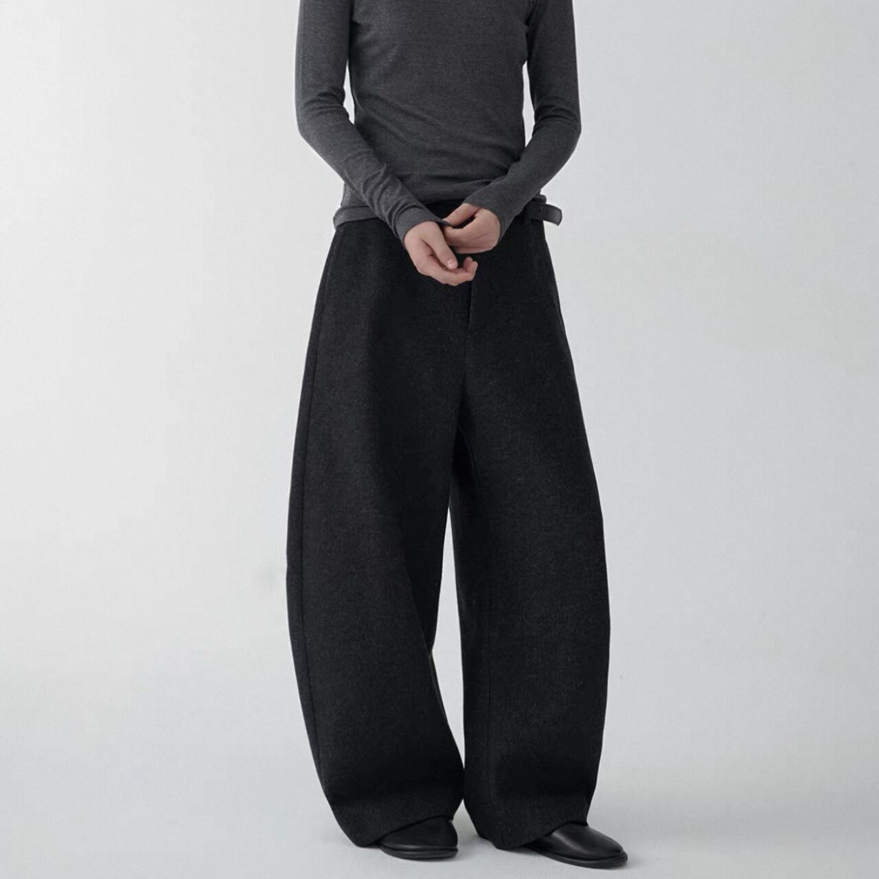 上品なニュアンスカラーと立体的なワイドシルエットが魅力のニットパンツ。