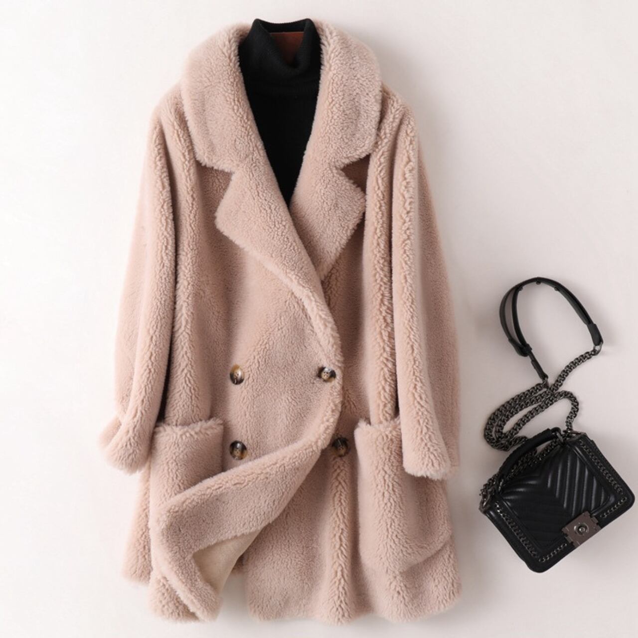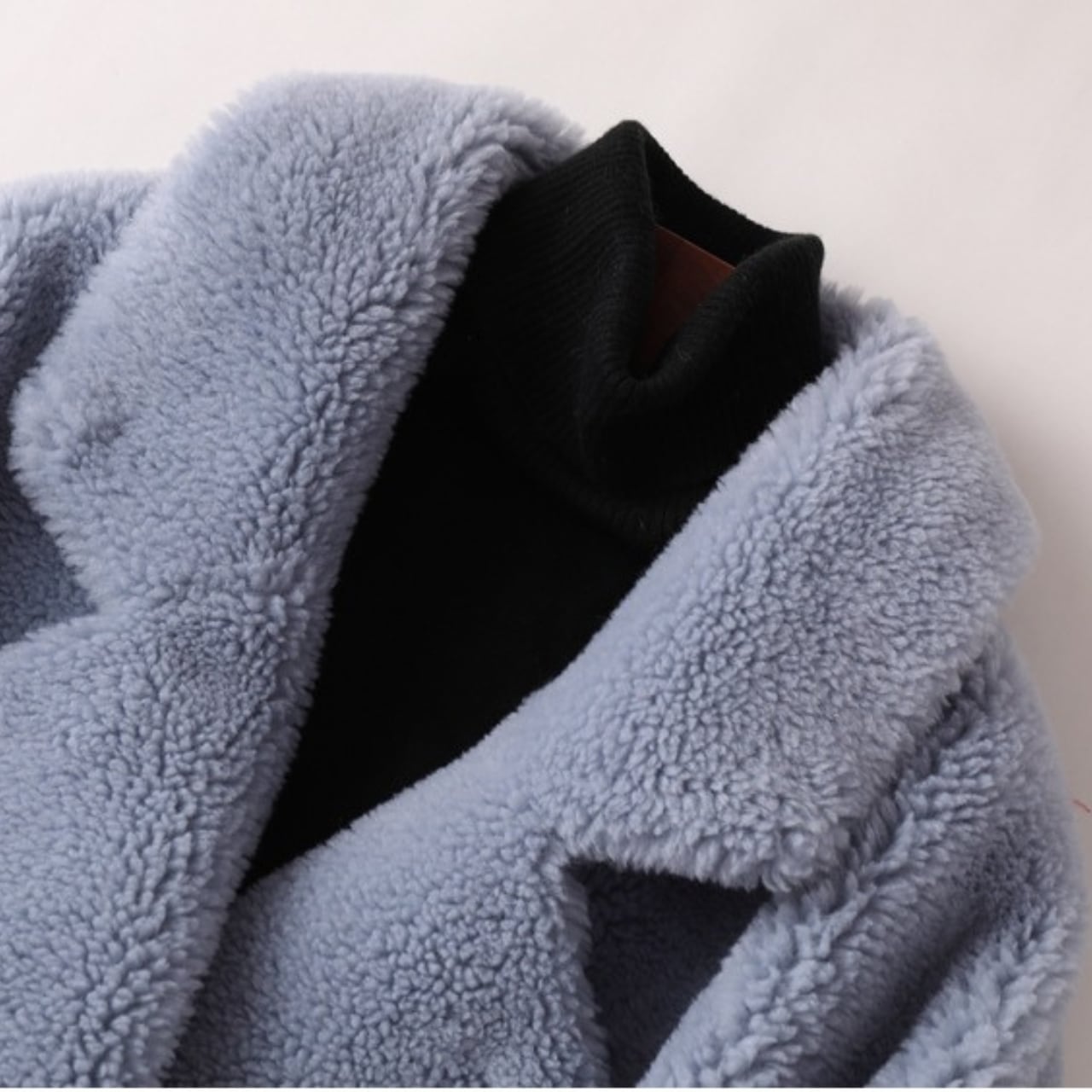 ふんわりとした柔らかなフェイクシアリング素材で仕立てた、冬の主役アウター。