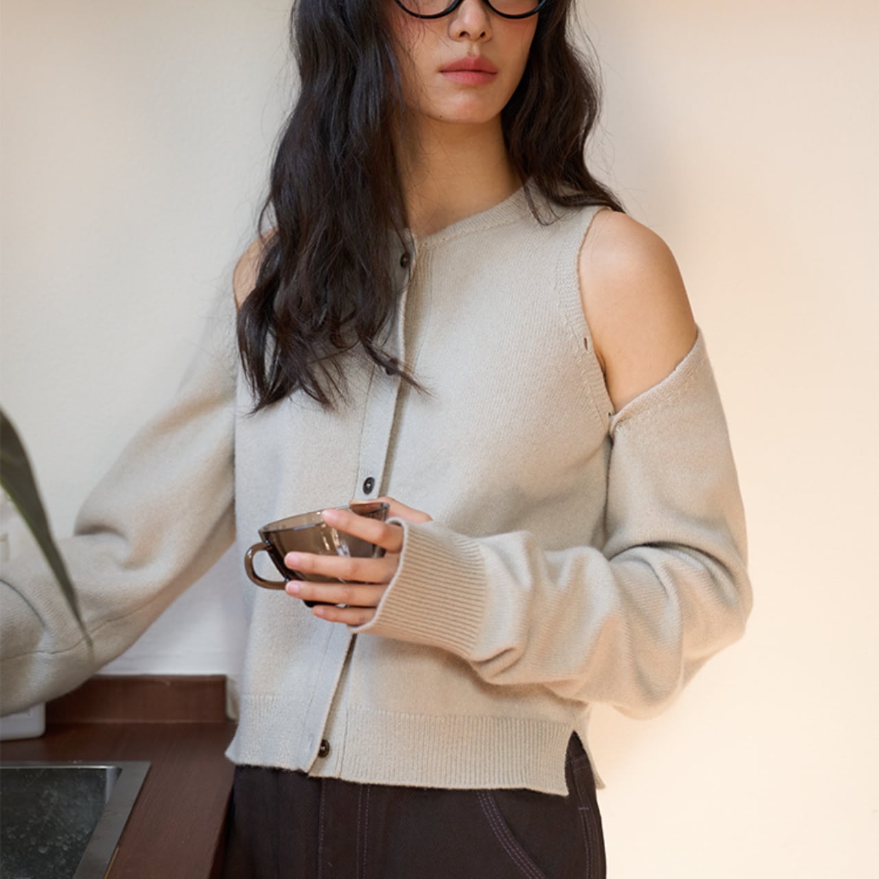 肩のスリットデザインが大人の抜け感をつくるニットカーディガン。