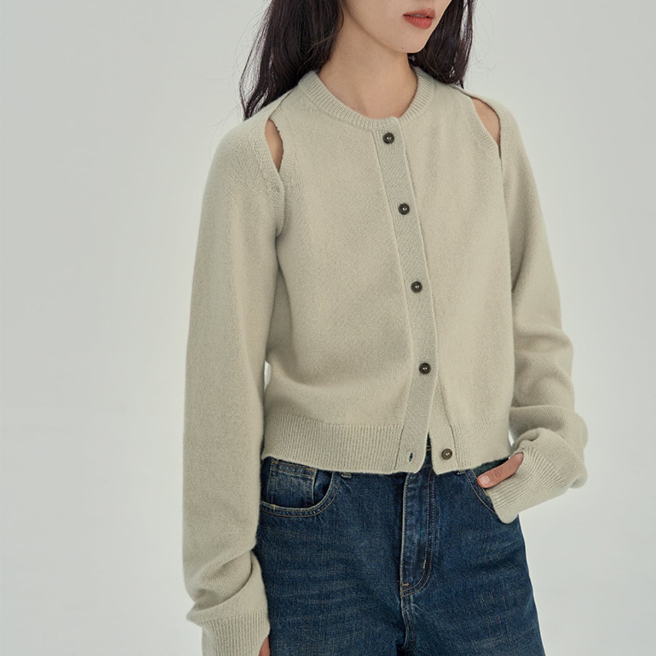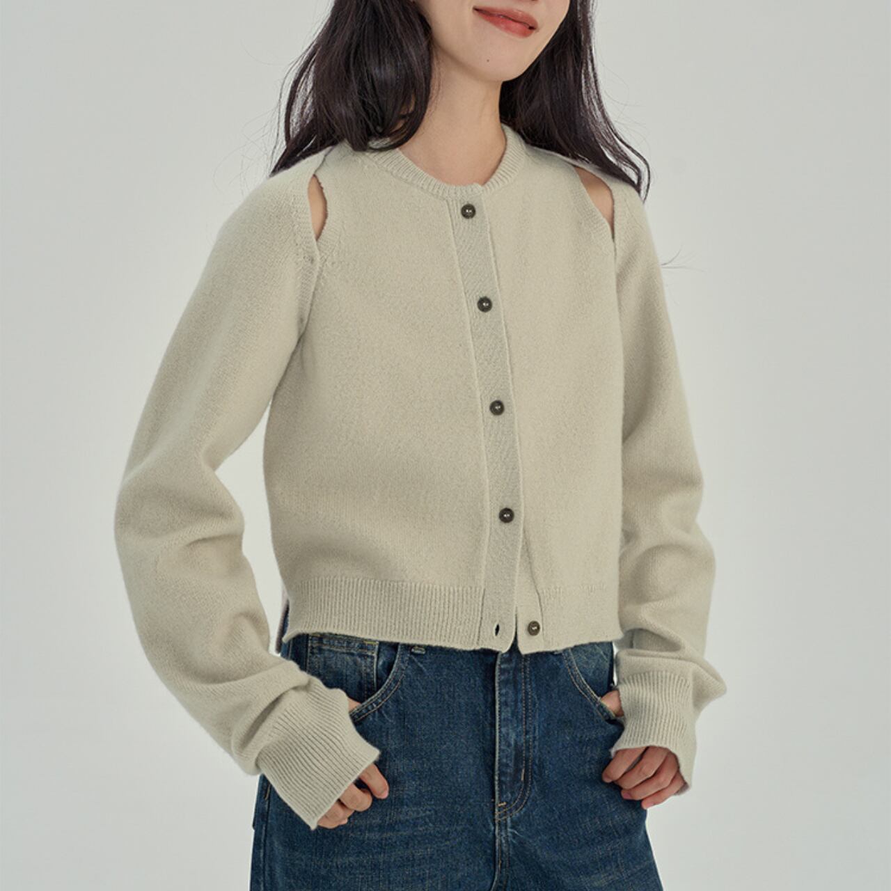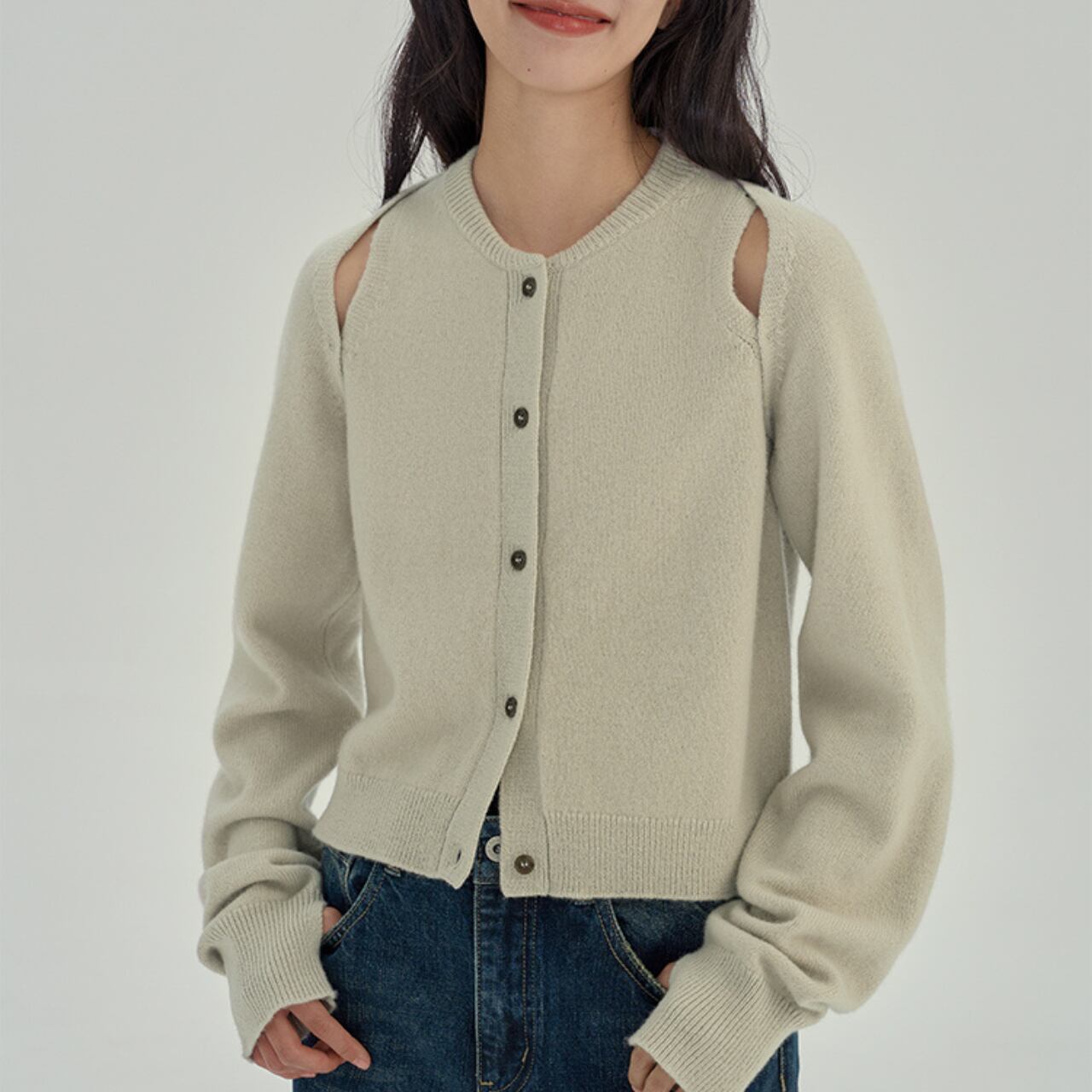 Oat-Cutout Knit Cardigan 00095