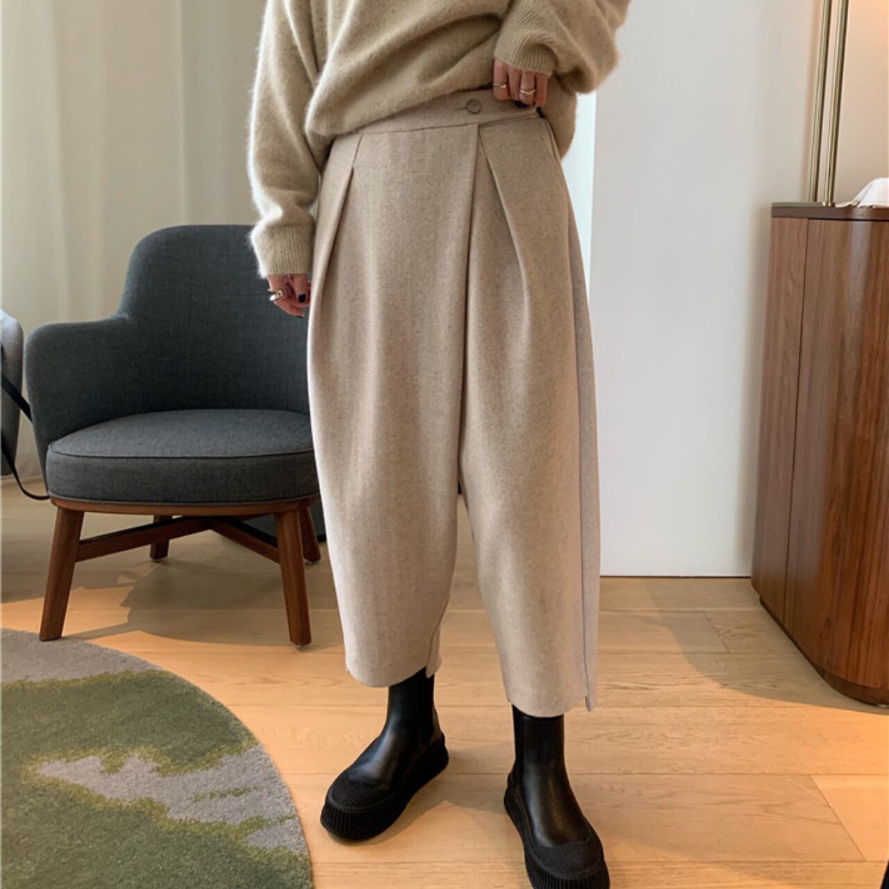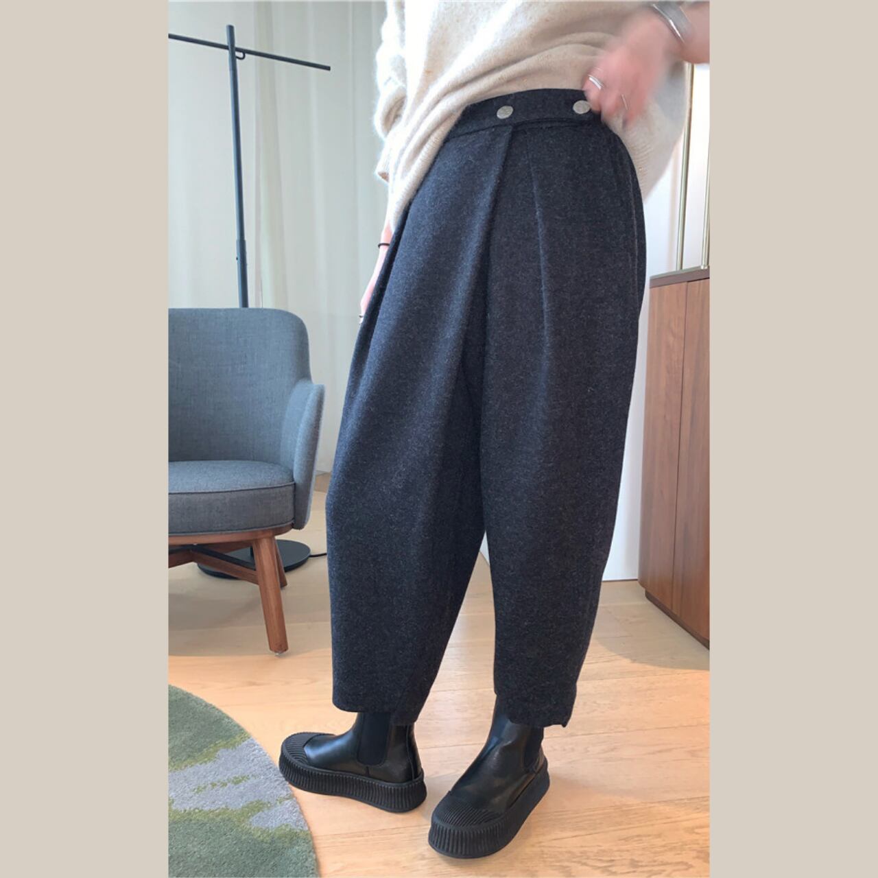 程よいゆとりのあるシルエットで、リラックス感のあるクロップドパンツ。