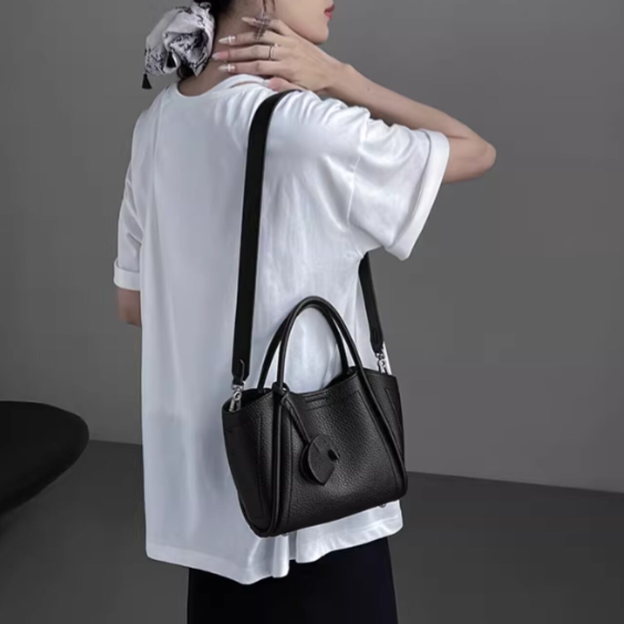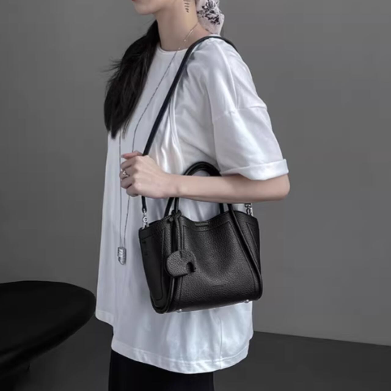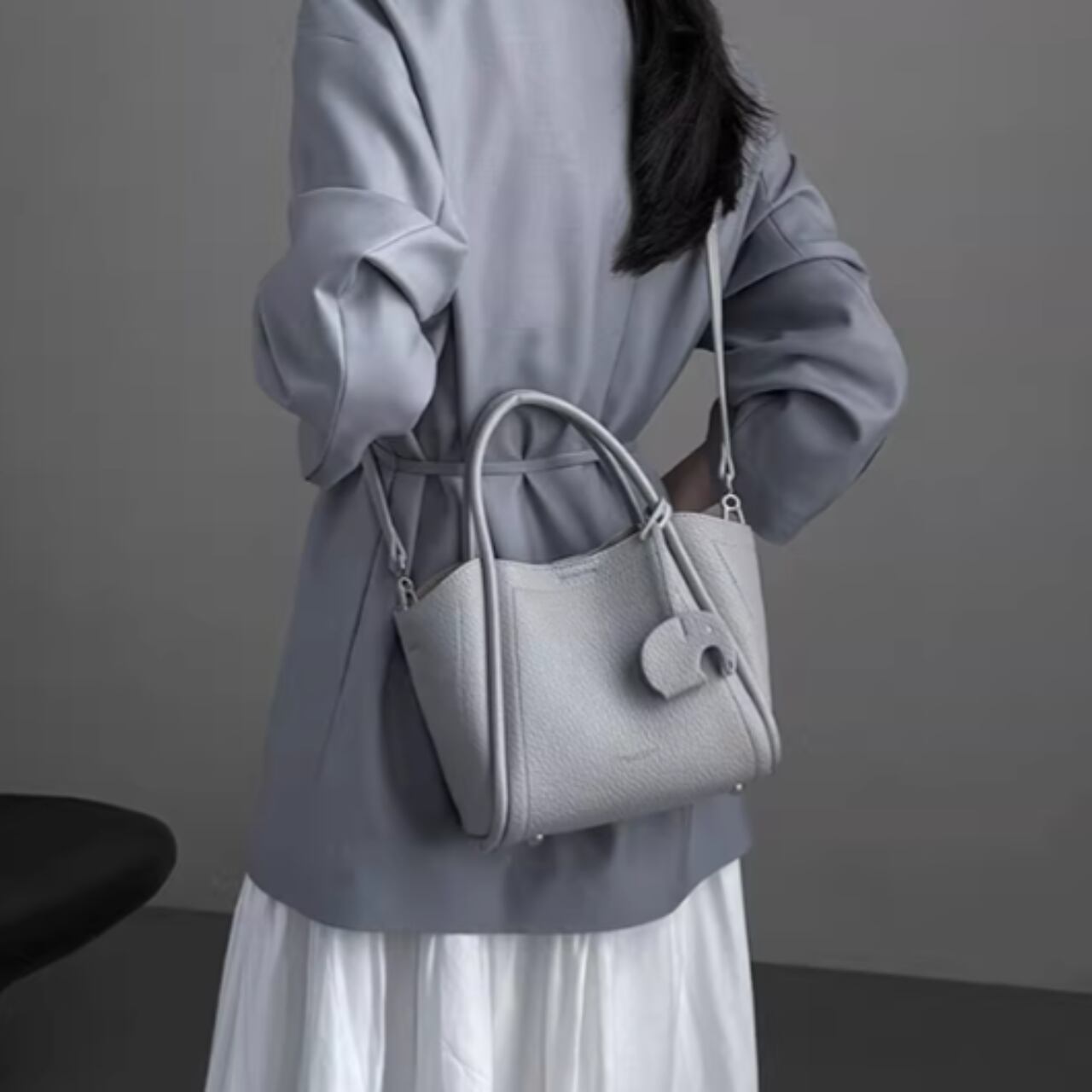 手提げ・肩掛け・斜め掛けの3Wayで使え、オンにもオフにも対応します。
